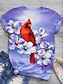 Naisten T-paita Painettu Kukka Lintu Muoti Lyhythihainen V kaula-aukko Tavalliset topit Pyhäpäivä Viikonloppu Purppura Beesi Kesä