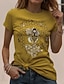 Naisten T-paita Painettu Kukka Tyylikäs Klassinen Vapaa-aika Lyhythihainen Tiukka pyöreä kaula-aukko Pyöreä kaula-aukko Tavalliset topit Päivittäin Kastanjanruskea Keltainen Punastuvan