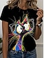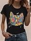 Naisten T-paita Painettu Kuvitettu Eläin Kissa Tyylikäs Vapaa-aika Lyhythihainen Pyöreä kaula-aukko Tavalliset topit Päivittäin Viikonloppu Musta Kesä Kevät