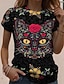 Naisten T-paita Pääkallo Grafiikka Kissa Vintage Tyylikäs Klassinen Lyhythihainen V-kaula Normaalit Topit Päivittäinen Printti Musta ja Valkoinen Musta Valkoinen Keltainen Vaaleanpunainen Kesä Kevät