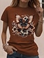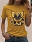 Naisten T-paita Painettu Kuvitettu Eläin Vintage Tyylikäs Vapaa-aika Lyhythihainen Tiukka pyöreä kaula-aukko Tavalliset topit Päivittäin Musta Valkoinen Keltainen Ruskea Kesä Kevät