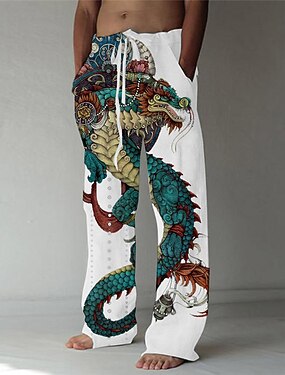 Miesten Housut Kesähousut Rantahousut Joustava kiristysnauhan suunnittelu Edessä tasku Suora jalka Lohikäärme Graafiset tulosteet Mukavuus Pehmeä Kausaliteetti Päivittäin Muoti Iso ja pitkä Valkoinen