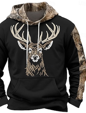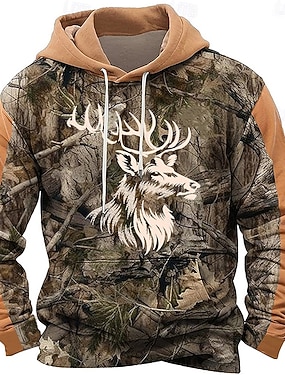 Miesten 3D Print Metsästys Hirvet Veryttelyhousut Housut Keskivyötärö Kiristysnyöri joustava vyötärö Aktiivinen Vintage Vapaa-aika ulko- Katuvaatteet Taskut Kevät Syksy 3D-tulostus Ruskea Harmaa