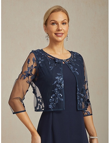 Naisten Bleiseri Jakku Kevyt Pitsi Kirjailtu Paljetti Illuusiopitsi Tyylikäs Kukka Muodollinen Vuosipäivä Juhla Häävieras Avoin etuosa Lyhyt Pyöreäkauluksinen Normaali 3/4 hiha Päällysvaatteet