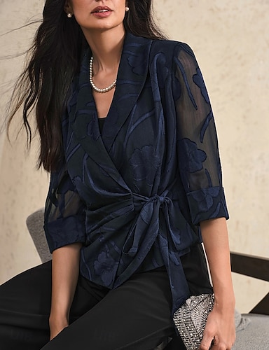Naisten Bleiseri Kevyt Pitsi Solmio solmu Tyylikäs tunika Epäsymmetrinen Tyylikäs Kukka Häävieras Työ Päivittäin Avoin etuosa Normaali V kaula-aukko Normaali 3/4 hiha Päällysvaatteet Munakoiso Kes