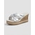 Naisten hopeanväriset kimaltelevat remmilliset platform-sandaalit espadrille-reunuksella – tyylikkäät lomakohteen tyyliset, mukavat avokärkiset kiilanmuotoiset sandaalit uima-altaan reunalla löhöilyyn ja kesämatkoille