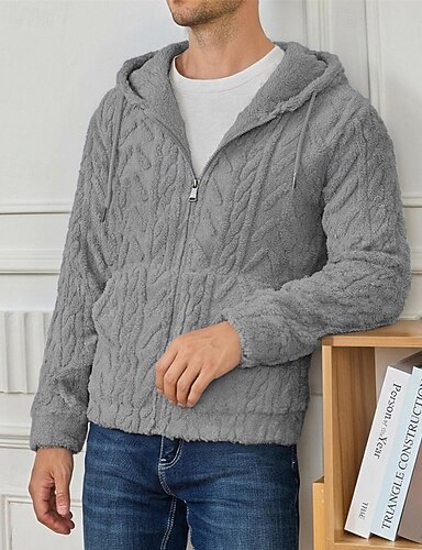 Miesten Huppari Sumea sherpa Musta Sininen Ruskea Khaki Harmaa Hupullinen Tavallinen Tasku Urheilu ja ulkoilu Päivittäin Pyhäpäivä Katutyyli Tyylikäs Vapaa-aika 봄 & Syksy Vaatetus Hupparit paidat