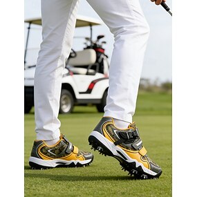 Miesten keltaiset ja mustat golfkengät, tarranauhakiinnitys, pehmustettu mukavuus, kestävä ulkopohja, täydelliset golfkentille ja ulkoiluun