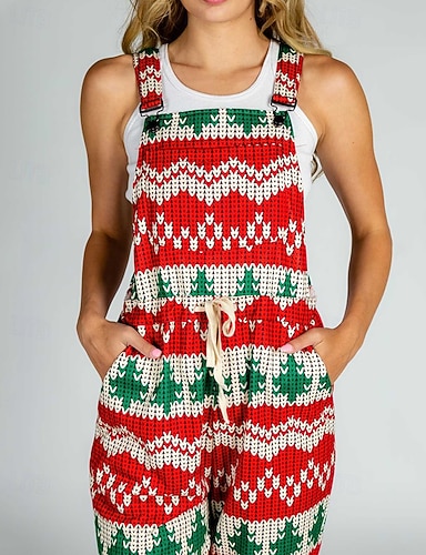 Naisten Normaali Haalarit Aktiivinen Kuvitettu Hihaton Nelikulmainen kaula-aukko Tasku Painettu Joulu Loma Normaali Sininen Valkoinen Vaalean vihreä Syksy