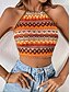 Naisten Hihaton Hihaton paita T-paita Geometrinen Böömi Klassinen Vapaa-aika Hihaton Tiukka pyöreä kaula-aukko Rajaa topit Päivittäin Bile Viikonloppu Oranssi Kesä Kevät