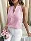 Naisten toppi kankaat kukallinen rento ilman hihoja V-pääntie säännölliset paidat päivittäiseen käyttöön vaaleanpunainen kesä