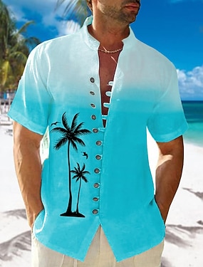 Miesten Paita pellava paita Rantapaita Havaiji paita Kookospuu Loma Pyhäpäivä Punastuvan vaaleanpunainen Sininen khaki Lyhyt hiha Sänkyjen avaus Kesä Vaatetus