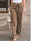 Naisten Puuvillaiset pellavahousut Housut Kesähousut Roikkuvat housut Loma Perus Vapaa-aika Täyspitkä Korka vyötärö Tavallinen Tasku Leveä reisi Elastinen vyötärönauha Pehmeä Mukava Hengittävä