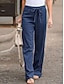 Naisten Leveä reisi Loma Perus Täyspitkä Keskivyötärö Joustamaton Loma Katu Kausaliteetti Sininen Musta Syvän sininen Kevät Loose Fit