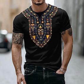 Miesten Geometrinen T-paita Lyhythihainen T-paita 3D-tulostus Tiukka pyöreä kaula-aukko Paita Muoti Etninen Päivittäin Katu Sininen Musta Purppura Kesä Kevät Vaatetus S M L XL XXL XXXL