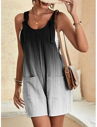 Naisten Normaali Haalarit Perus Yhtenäinen väri Hihaton Tiukka pyöreä kaula-aukko Napit Tasku Katu Päivittäin Normaali Musta Vaalean vihreä Punastuvan vaaleanpunainen Kesä