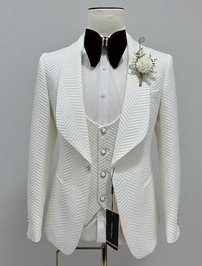 Miesten Smokit Juhlapuvut Häät Näyttämö Valkoinen Kevät, Syksy, Talvi, Kesä Puku Hartiahuivikäänne Muoti Juhla Painettu Tyköistuva 3-osainen setti Kasksirivinen kaksi nappia