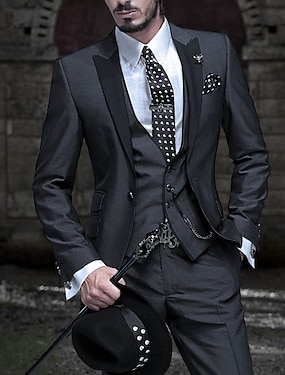 Miesten Juhlapuvut Kausaliteetti liiketoiminta Musta Tumman harmaa Kevät, Syksy, Talvi, Kesä Puku Hartiahuivikäänne Päivittäin Juhla Yhtenäinen Räätälöity istuvuus 3-osainen setti Yksirivinen yksi
