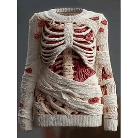 Naisten neulepaita luuranko muoti rento graafinen luuranko pyöreä kaula-aukko neulottu pitkät hihat säännölliset yläosat neulottu punainen sininen syksy talvi