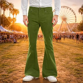 Retro / vintage 1960 luku Hippi Pitkä Pituus Housut Bell Bottom Housut Leveälahkeiset housut Hippi Yhtenäinen väri Naamiaispuku Miesten Halloween Karnevaali Naamiaiset Juhla musiikkifestivaali