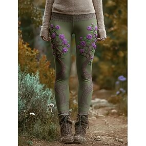 Naisten Leggingsit Mukavat leggingsit Loma Vintage Vapaa-aika Täyspitkä Korka vyötärö Kuvitettu Ruusu Tulostus Mukavuus Mukava Elastinen Kausaliteetti Päivittäin Loma Syvä vihreä Apila Kevät Syksy