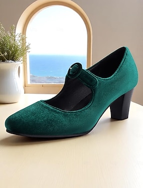 naisten vihreä samettinen t-hihna mary jane -korkokengät lohkokorkolla – vintage-vaikutteiset mekkokengät juhliin ja muodollisiin tapahtumiin