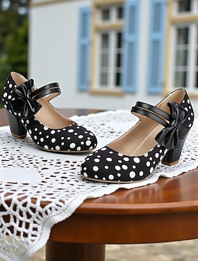 naisten elegantit retro-vaikutteiset mustavalkoiset tekonahkapumput tikkakorolla - täydellinen häihin ja erikoistilaisuuksiin