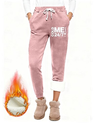 Naisten Veryttelyhousut Fleece-housut Housut Muoti Perus Vapaa-aika Täyspitkä Korka vyötärö Kirjain Kurenauha Tasku Painettu Pidä lämpimänä Tuulenkestävä Mukava Elastinen Loma Katu Kausaliteetti