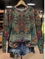 Naisten Pullover-huppari Kuvitettu Paisley-kuvio Lämmin Vintage Läntinen Pitkähihainen Tiukka pyöreä kaula-aukko Tavalliset topit Katu Arkikäyttö Kausaliteetti Painettu Punastuvan vaaleanpunainen