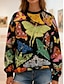 Naisten Puserot Kuvitettu Perhonen Lämmin Klassinen Vapaa-aika Pitkähihainen Tiukka pyöreä kaula-aukko Pyöreä kaula-aukko Tavalliset topit Koti Katu Arkikäyttö Painettu Valkoinen Kevät Syksy Talvi