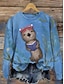 Naisten Pullover-huppari Kuvitettu Eläin Vapaa-aika Pitkähihainen Tiukka pyöreä kaula-aukko Tavalliset topit Katu Kausaliteetti Pyhäpäivä Painettu Ruskea Beesi Harmaa Kevät Syksy Talvi