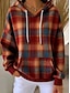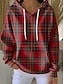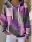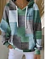 Naisten Pullover-huppari Kuvitettu Geometrinen Skottiruutukuvio Muoti Vapaa-aika Painettu Pitkähihainen Hupullinen Tavalliset topit Katu Arkikäyttö Kurenauha Painettu Sininen Ruskea Apila Harmaa