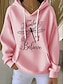 Naisten Pullover-huppari Kirjain Lämmin Vapaa-aika Sherpa Fleece Pitkähihainen Hupullinen Pitkät topit Katu Arkikäyttö Kausaliteetti Painettu Tumma vaaleanpunainen Harmaa Syksy Talvi
