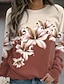 Naisten Pullover-huppari Hupparit Kukka Kuvitettu Muoti Vapaa-aika Pitkähihainen Tiukka pyöreä kaula-aukko Tavalliset topit Katu Arkikäyttö Painettu Sininen Purppura Ruskea Kevät Syksy Talvi