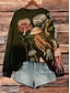 Naisten Pullover-huppari Kuvitettu Eläin Kissa Lämmin Aktiivinen Vintage Pitkähihainen Tiukka pyöreä kaula-aukko Tavalliset topit Katu Arkikäyttö Kausaliteetti Tilkkutäkki Painettu Khaki Harmaa Kevät