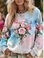 Naisten Pullover-huppari Kukka Tavallinen Tyylikäs Lämmin Muoti Pitkähihainen Pyöreä kaula-aukko Tavalliset topit Työ Katu Arkikäyttö Tilkkutäkki Painettu Valkoinen Punastuvan vaaleanpunainen Sininen