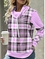 Naisten Pullover Hupparit Skottiruutukuvio Katutyyli Vapaa-aika Pitkähihainen Hupullinen Tavalliset topit Katu Arkikäyttö Painettu Punastuvan vaaleanpunainen Purppura Oranssi Apila Syksy Talvi