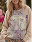 Naisten Pullover Puserot Kukka Kuvitettu Vintage Katutyyli Pitkähihainen Pyöreä kaula-aukko Tavalliset topit Arkikäyttö Kausaliteetti Painettu Viini Purppura Oranssi Apila Kevät Syksy