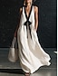 Naisten Maxi Mekko Pellavamaista Hengittävää Kevyt Aurinkomekko A-linjainen Mekko Loma Rennoissa Boho Ranta Ulkona Löysä Istuvuus Graafinen Geometrinen Pitkähihaista V-kaula Sininen Musta Valkoinen