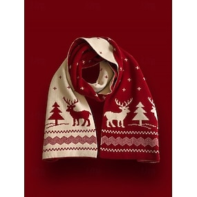 naisten joulu poro- ja puukuvioinen neulottu huivi punavalkoisena, kodikas talviasu lomajuhliin