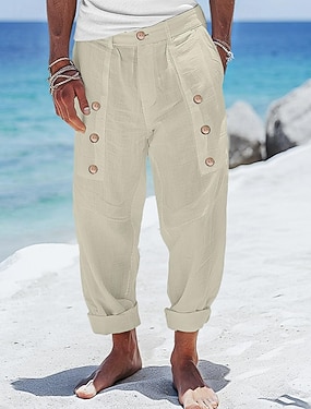 Miesten Pellavahousut Housut Kesähousut Napit Edessä tasku Laskokset Tavallinen Mukavuus Hengittävä Täyspitkä Kausaliteetti Päivittäin Pyhäpäivä Muoti Perus Loose Fit Musta Valkoinen