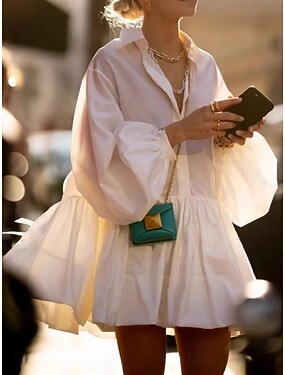 Naisten Mini mekko Paitamekko Rento mekko Muoti Moderni Puhvihiha ulko- Loma Bile Loose Fit Tavallinen Lyhythihainen Paitapuserokaula-aukko Valkoinen Kesä Kevät