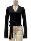 Naisten Pusero Tavallinen Tyylikäs Vintage söpö tyyli Pitkähihainen Epäsymmetrinen V kaula-aukko Tavalliset topit Työ Päivittäin Pyhäpäivä Rypytetty Tilkkutäkki Nauhanreikä Musta Valkoinen Punastuvan