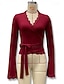 Naisten Pusero Tavallinen Tyylikäs Seksikäs Pitkähihainen V kaula-aukko Tavalliset topit Pyhäpäivä Bile Solmittava Pitsi leikkaus Musta Punastuvan vaaleanpunainen Viini Kevät Syksy