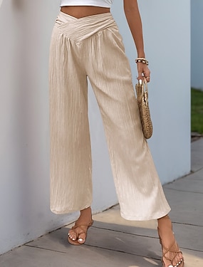Naisten Housut Kesähousut Rantahousut Loma Muoti Rento arki Nilkkapituinen Korka vyötärö Yhtenäinen väri Tavallinen Joustava vyötärö Leveä reisi Mukavuus Pehmeä Hengittävä Joustamaton Katuvaatteet