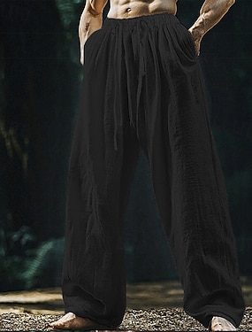 Miesten Pellavahousut Housut Kesähousut Roikkuvat housut Rantahousut Kurenauha Joustava vyötärö Suora jalka Tavallinen Mukavuus Hengittävä Täyspitkä ulko- Jooga Jumppa Muoti Retro / vintage Musta