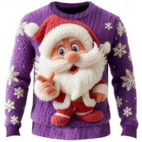 Christmas Miesten Joulupukki Soittoväline Puserot College College Pitkähihainen Villapaita Tiukka pyöreä kaula-aukko Tyylikäs Rock 3D-tulostus Katuvaatteet Festivaali Crewneck Talvi 봄 & Syksy