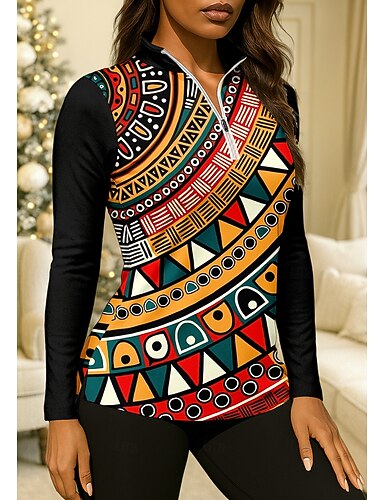 Naisten Geometrinen Poolopaita Tennispaita Pitkähihainen Painettu Neljänneksen postinumero Pullover UV suoja Elastinen Hengittävä Lentopallo Tennis Golf Stand-kaula-aukko Vetoketjullinen kaulus