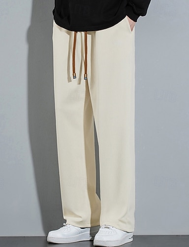 Miesten Pellavahousut Housut Roikkuvat housut Rennot housut Kurenauha Tasku Joustava vyötärö Tavallinen Mukavuus Urheilu ja ulkoilu Päivittäin Muoti Vapaa-aika Sininen Musta Mikrojoustava
