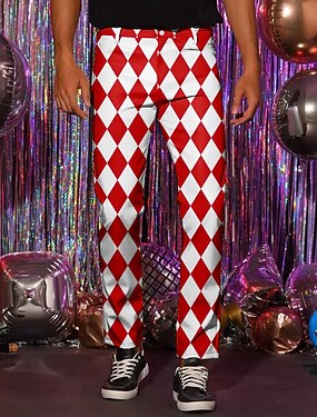 Miesten Ruutu / skotti vinoneliö Puvunhousut Keskivyötärö Vapaa-aika ulko- Loma Koti Vetoketju Tasku Kesä Kevät Syksy 3D-tulostus Musta Punainen Sininen